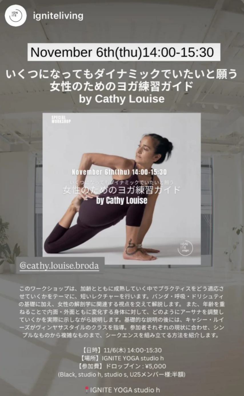 Mayのアシュタンガヨガの師でもある、Purple Yoga Hawaiiのキャシー・ルイーズ先生が来日されます。